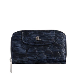 Skórzany portfel damski na magnes z fakturą imitującą skórę węża w beżowym kolorze - Peterson