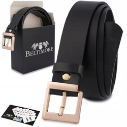 Skórzany pasek damski do spodni sukienki czarny skóra nat 4 cm Beltimore D86 : Kolory - czarny, Rozmiar pasków - r.95-110 cm