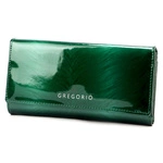 Pojemny Skórzany damski klasyczny podłużny portfel lakierowany Gregorio
