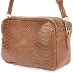Torebka damska w ciemnobeżowym kolorze wyposażona w kieszeń zewnętrzną - Peterson