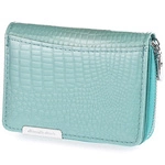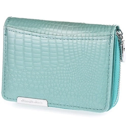 Skórzany portfel damski poziomy mały lakierowany zielony piórka 897