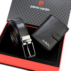 Zestaw prezentowy: skórzany portfel i pasek męski ze skóry naturalnej - Pierre Cardin