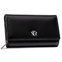 Duży portfel damski ze skóry naturalnej na zamek i zatrzask - Rovicky