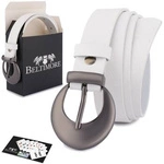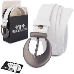 Skórzany pasek damski do spodni sukienki biała skóra nat 2,5 cm Beltimore O03 : Kolory - biały, Rozmiar pasków - r.85-100 cm
