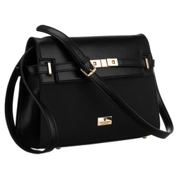Czarna saszetka damska ze skóry ekologicznej z kieszenią na rewersie - Peterson
