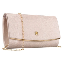 Wizytowa torebka damska wykonana z tkaniny syntetycznej w beżowym kolorze - Rovicky