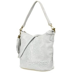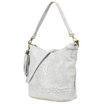 Torebka skórzana zamszowa CROCO listonoszka 2 paski jasna szara Beltimore W13