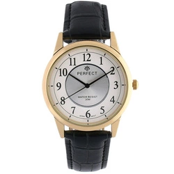 Zegarek męski kwarcowy czarno-złoty klasyczny skórzany pasek C402