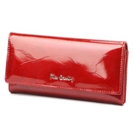 Klasyczny, skórzany portfel damski w czerwonym kolorze zamykany zatrzaskiem i biglem - Peterson