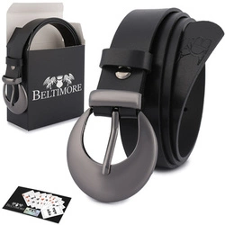 Skórzany pasek damski do spodni sukienki czarny skóra nat 4 cm Beltimore D86 : Kolory - czarny, Rozmiar pasków - r.85-100 cm