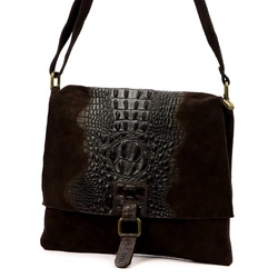 Torebka skórzana zamszowa CROCO listonoszka 2 paski jasna szara Beltimore W13