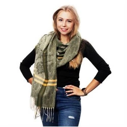 Zielony Bawełniany duży szalik damski ciepły szal elegancki D12