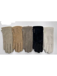 Rękawiczki damskie, skóra cielęca, ocieplane welurem.