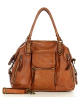 Torebka skórzana XL shopper vintage bag z kieszeniami vera pelle - MARCO MAZZINI brąz migdałowy
