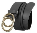 Gładki, skórzany pasek damski ze złotą, podwójną klamrą - Rovicky