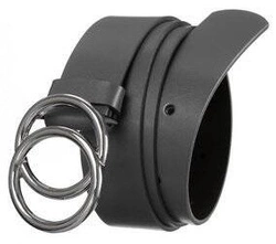 Gładki, skórzany pasek damski ze srebrną, podwójną klamrą - Rovicky