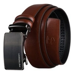 Skórzany pasek męski w brązowym kolorze z automatyczną klamrą - Peterson