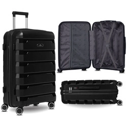 Czarna, średnia walizka z polipropylenu z obrotowymi kółkami - Peterson