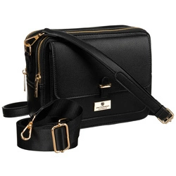 Czarna, miejska torba damska ze skóry ekologicznej z dwoma paskami w zestawie - Peterson