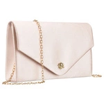 Beżowa kopertówka damska ze skóry ekologicznej zawieszona na łańcuszku - Rovicky