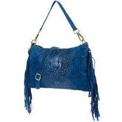Niebieska damska włoska skórzana torebka frędzel pozioma Z24
