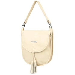 Beżowa Torebka damska skórzana worek frędzel A5 modna L81