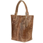 Duża torebka klasyczna ze skóry naturalnej miękkiej - Brązowa jasna