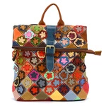 Kolorowy Plecak damski skórzany w mozaikę i kwiaty