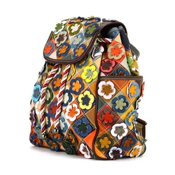 Kolorowy Plecak damski skórzany w mozaikę i kwiaty