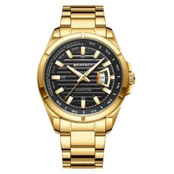 Złoty zegarek męski bransoleta duży solidny Perfect M102